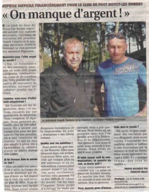 Dans son édition du jeudi 13 Septembre Le Journal du Centre est venu rencontrer le président Franck CANACOS et le secrétaire Frédéric PATURAUD , vous retrouverez l'interview en piece jointe .