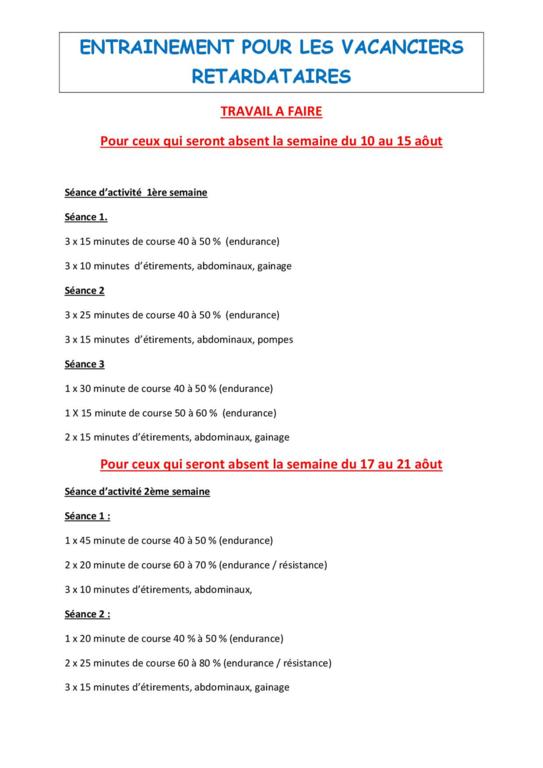 Pour les vacanciers séniors-vétérans aoûtiens, vous trouverez un planning d'entrainement hebdomadaire..
